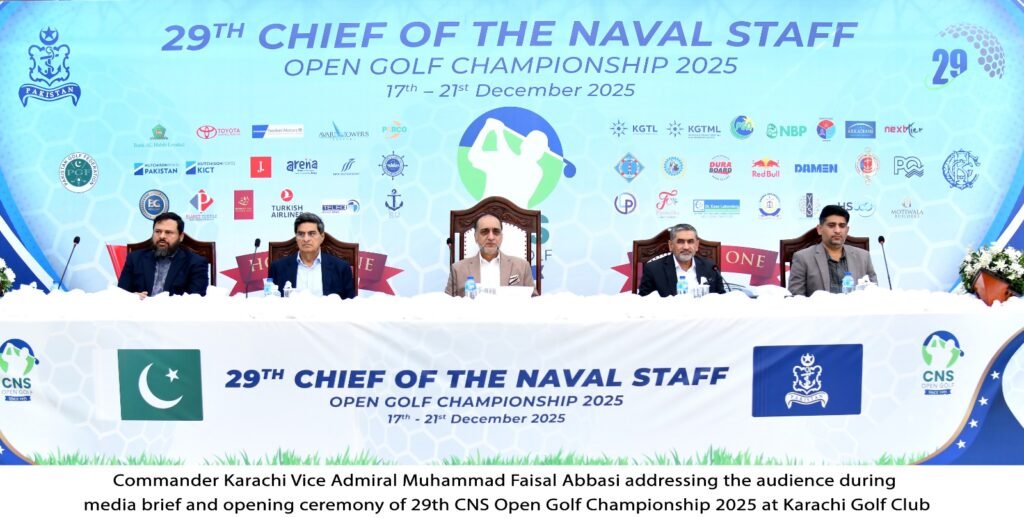 Karachi, 17 December 2025 – The 29th Chief of the Naval Staff (CNS) Open Golf Championship 25 officially began on Wednesday at the Karachi Golf Club (KGC) with a formal opening ceremony and media briefing. Vice Admiral Muhammad Faisal Abbasi, Commander Karachi and President KGC, presided over the ceremony as the Chief Guest.