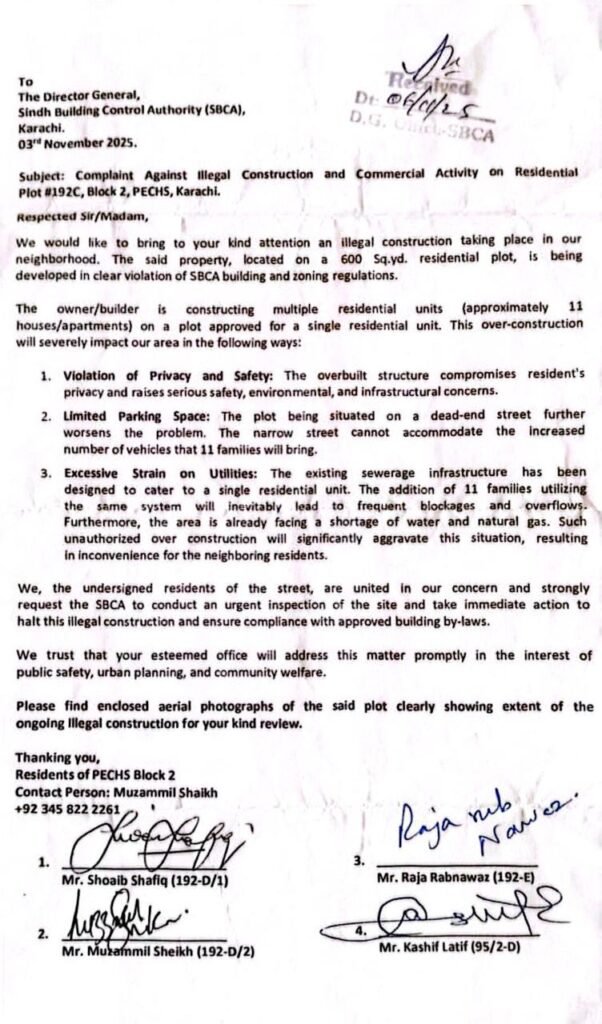 Residents have urged the Chief Minister to launch indiscriminate action against illegal constructions and systemic corruption across the city, including the PECHS Plot 192-C case, to restore the rule of law.