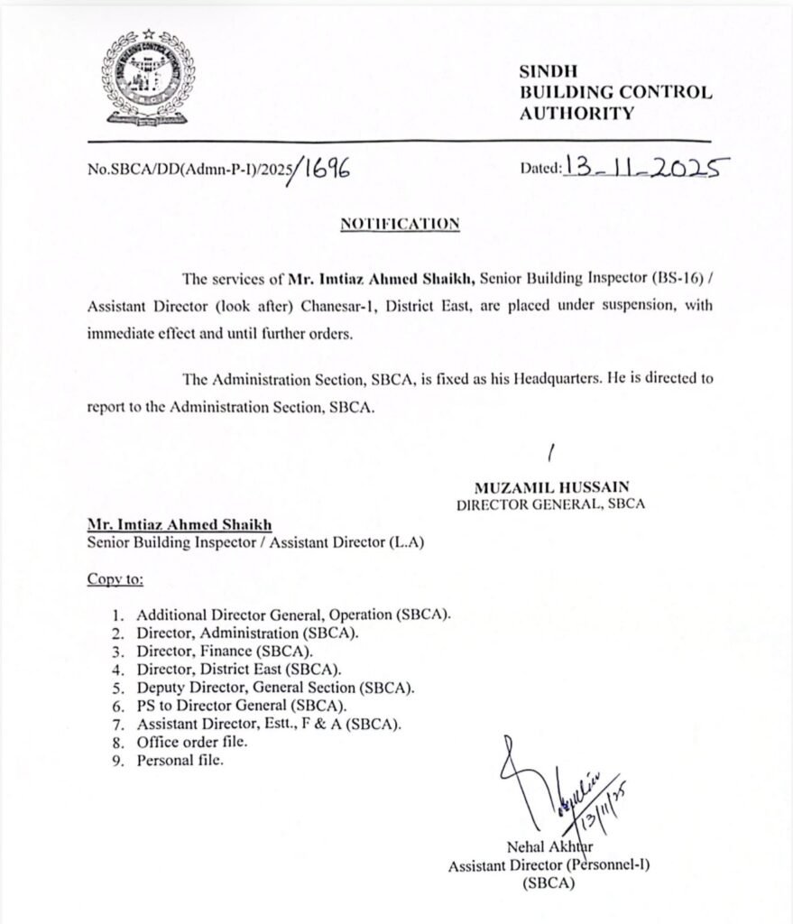 When the situation was brought to the attention of Sindh Chief Minister Syed Murad Ali Shah, he immediately issued directives to demolish the illegal structure and take stern action against the SBCA officials involved.