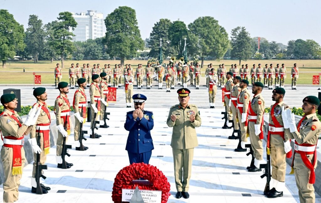 Upon his arrival at GHQ, the Saudi CGS laid a floral wreath at Yadgar-e-Shuhada to honour Pakistan’s martyrs. He was also presented a Guard of Honour by a smartly turned-out contingent of the Pakistan Army.