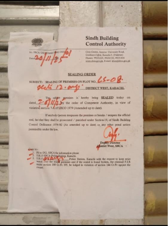 Observers say the situation raises serious questions about internal accountability mechanisms within the Sindh government and SBCA itself.